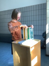 Vor den Osterferien fand für vier Wochen die Miniphänomenta statt. Frau Laacks hatte die Miniphänomenta organsiert. So hatten die Schüler:innen an vier Stellen der Schule an verschiedenen Stationen die Gelegenheit zum Ausprobieren und altersgemäßem Forschen. Sie konnten z.B. durch Handauflegen auf verschiedene Metalle prüfen, ob Strom fließt, erkunden ob eine Kugel in einer Röhre schneller durch Wasser oder Öl fällt oder zusehen, wie ein Pendel im Sand Spuren zeichnet.